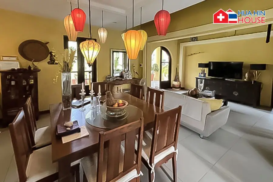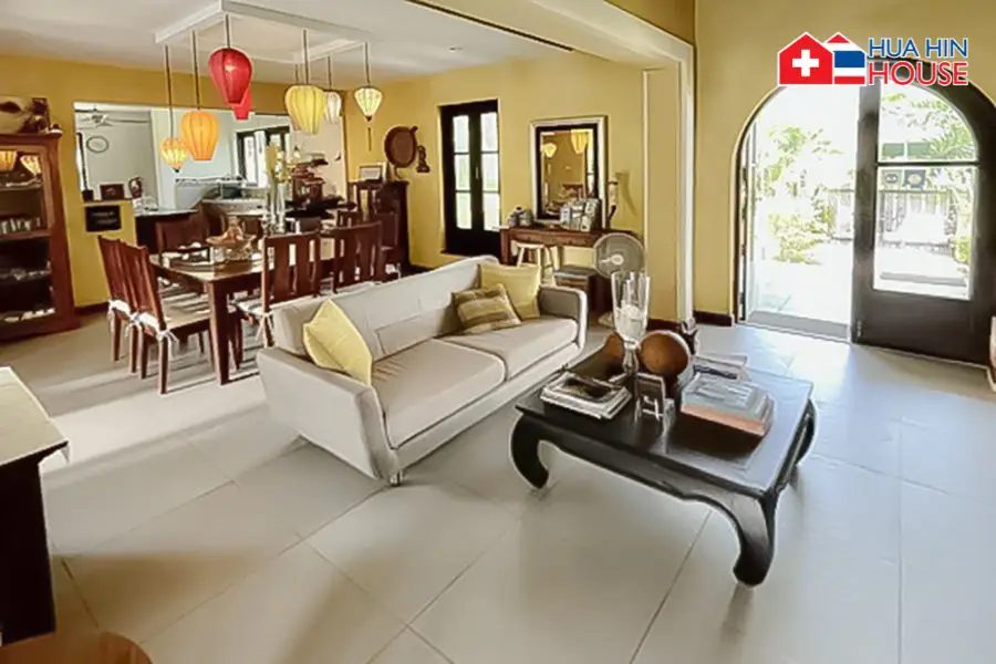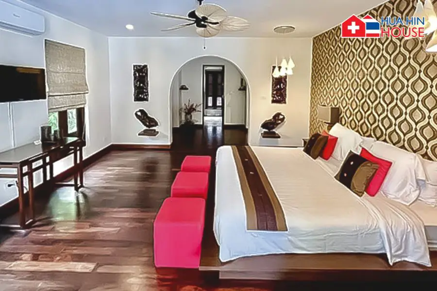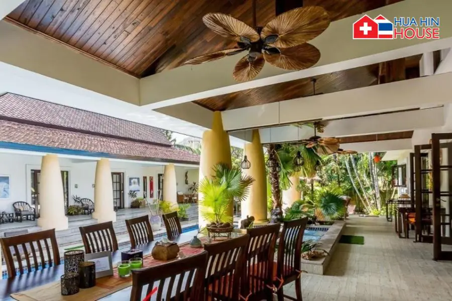 In einer ruhigen, etablierten Wohnlage von Hua Hin präsentiert sich diese aussergewöhnliche Villa im Thai-Balinesischen Stil. Die Liegenschaft vereint Grosszügigkeit, Privatsphäre und architektonische Eleganz und eignet sich sowohl als anspruchsvoller Privatwohnsitz als auch als Boutique-Investment.